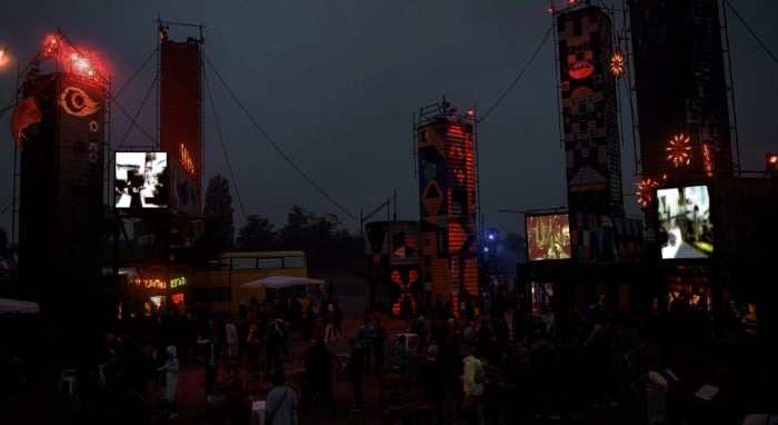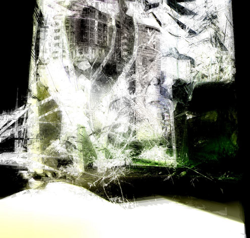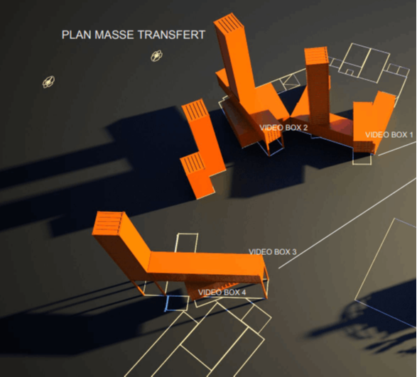 Transmutation(s) offers the audience an immersive journey that poetically reflects the past, present, and future of the Transfert site in Rezé and its surroundings. In this work, three organic perspectives interact, drawing daily from new data to generate, over time, perpetually evolving universes where architecture and nature, landscapes and materials, intermingle.Transmutation(s) is a creation that immerses spectators in a world of ceaseless transformation. This dreamlike universe feeds on urban elements, fragments of nature, and architectures harvested from the heart of the site and its surroundings. These elements are animated and orchestrated by a set of public data reflecting the site's activity and its surroundings. Transport, weather, demographic evolution, and the Transfert site, in the form of metadata, nourish and animate the installation.The collected data generate in real time the construction of graphic environments, their forms, and their arrangements in space.Waterproof retro-projection canvases are installed on the open faces of the three containers. Inside, a video projector is installed, projecting images outward to the visitors. At dusk, the containers come alive.Each container broadcasts distinct and complementary visual fragments, offering an immersion into the intimacy of the generated materials. These highly plastic universes play with effects of zoom, camera movements, focus, light, and moving materials. Under the influence of metadata, each container undergoes a transformation at its own pace. It is therefore a new immersion, this time into the detail, the material, the intimacy of the data, a breakthrough into a constantly evolving universe.---