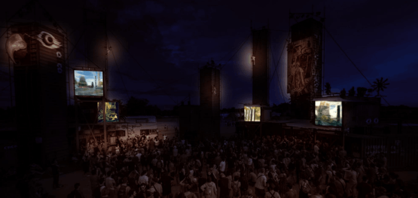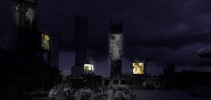 Des toiles de rétro-projection imperméables sont installées sur les faces ouvertes des trois conteneurs. À l'intérieur, un vidéoprojecteur est installé, projetant les images vers l'extérieur face aux visiteurs. À la tombée de la nuit, les conteneurs s'animent.